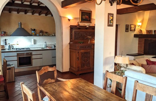 Furnished with 19th century antiques, this comfortable retreat offers an open spacious living room with cathedral ceilings, galery with garden views, designer kitchen with granite counter top, central heating, screened windows, unlimited high speed Wi-Fi, cozy fireplace, two patios, gazebo, barbecue, and uninterrupted views of gardens and wooded hills. In addition to the private gardens directly surrounding the house, which are for the exclusive use of Limonaia guests, you can enjoy an 800 meter private jogging trail, and walks through private woods and olive groves.