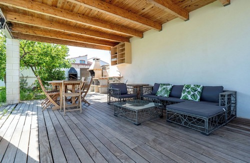 The accommodation offers a private outdoor area with a pool, covered terrace, and balcony. Please note that access to the pool and barbecue area is via a spiral staircase. There is one parking space available on the property and free street parking.