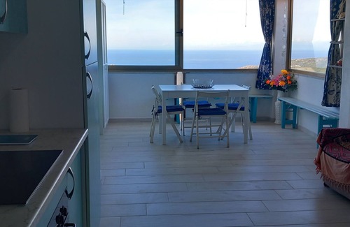 The large open space with equipped kitchen allows you to enjoy the sea view from every corner of the living room.