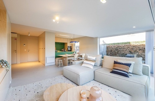 Nestled in the serene coastal town of Koksijde, this stylish holiday home blends modern comfort with a peaceful garden setting perfect for a relaxing escape by the sea. Step into a bright entrance hall that sets the tone for your stay, with a separate toilet for added convenience. The spacious living room invites you to unwind with a cozy sitting area, digital TV, Wi-Fi, and a dining space for shared meals. The adjoining kitchen is a true highlight—hip, sleek, and fully equipped with premium materials, including an induction hob, fridge with freezer, and dishwasher. Both the living area and kitchen open directly onto a private terrace and garden, furnished for al fresco dining and quiet lounging. The ground floor features a stylish bedroom with a 1.80m boxspring bed (2x single mattresses & duvets), offering restful sleep in a peaceful setting. Upstairs, you'll find the second bedroom with a 2-person boxspring (double mattress and duvet), as well as a modern bathroom with a bathtub, glass shower wall, washbasin, and toilet. A separate laundry room with a washing machine and dryer adds to the home’s convenience. This is a non-smoking, pet-free property to ensure a fresh and calming atmosphere. Situated in charming Koksijde, this home is just moments from the wide sandy beach, lively promenade, and the renowned Paul Delvaux Museum. Nearby, explore coastal cycling routes, cozy cafés, boutique shopping, and De Doornpanne nature reserve. For families, Plopsaland De Panne is a short drive away, while art and architecture lovers can venture to the historic towns of Veurne and Nieuwpoort. Whether you're seeking quiet coastal vibes or local discovery, this home offers the perfect setting.