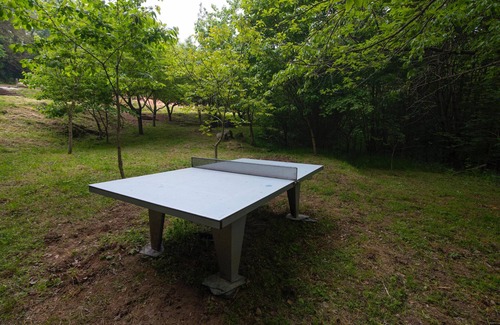Step outside to explore your private beech forest with various conditioned spaces and a grass football field. The landscaped garden areas include a chill out zone with exterior tables, ping pong table, and grill. You can enjoy hiking trails through the beech trees and rivers with trout, with routes leading to peaks like Turó de l'Home, Roc Perer, and les Agudes. A seasonal vegetable garden with lettuce is available when in season, along with a chicken coop.