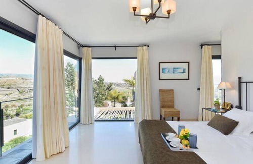 The beautiful villa is comfortably furnished and has a unique style. Outside there is a private garden with comfortable sun loungers and a cozy covered terrace with a dining area. You can also enjoy the exclusive swimming pool, which is integrated between the rocky mountains and from which you have a breathtaking view of the sea. On the edge of the exclusive Golf Resort Salobre, this charming residential complex with several villas awaits you. With its spectacular architecture, it nestles wonderfully in the mountain landscape of Maspalomas. You can buy your daily groceries in the nearby small supermarket, there is a restaurant and for an additional fee you can use the facilities of the neighboring resort.The popular tourist centers of Maspalomas and Playa del Ingles can be reached in less than ten minutes by car. Details: 15% green fee discount The South Golf Course (18 holes) has a par of 71 strokes over a length of 6,112 meters, the Golf Course North (18 holes) has a length of 5,524 meters and a par of 72 strokes. Guests of the villas receive a green fee discount. But it is also worth planning a day trip or two. After all, an island full of contrasts is waiting to be conquered by you. Don't just drive to the beautiful beaches, but discover also the charm of the old pine forests, stroll through desert-like landscapes or embark on an exciting crater tour.For example, the Bandama crater in the northeast of the island is an interesting destination, the drive there takes about 50 minutes Not suitable for people with reduced mobility