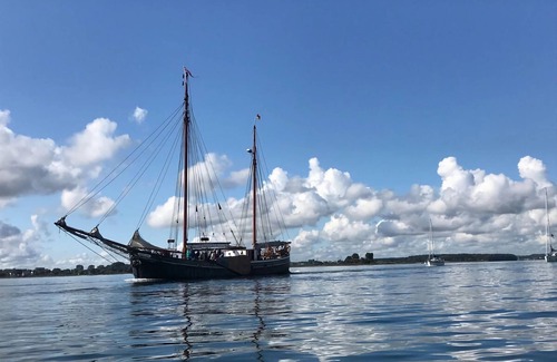 The Seemannskoje is a semi-detached house on the Schlei Terraces in Kappeln. The house offers a very large bathroom with sauna and large shower on the upper floor. There is also one of 2 bedrooms. On the upper floor there is also a piano room with seating for 2 people and access to the south-west balcony. There is another double bed on a gallery, which can be reached via a stair ladder. All in all, an ideal private retreat. You can spend hours together in the cozy living area with an open kitchen and spacious dining area. When the weather is nice, you can step directly onto the large south-west terrace. If you don't like climbing stairs, you can use the second bedroom, which is located in close proximity to the smaller shower room on the ground floor.