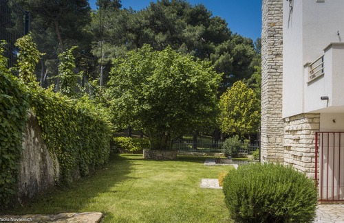 Placed in a prime location, only 50 meters from the sea, surrounded by pinewood, 5 minutes walk from the historical center of Porec, a beautiful house with airy living room, kitchen, dining area, two bedrooms, two bathrooms, attic room, outside arcade and large private garden.