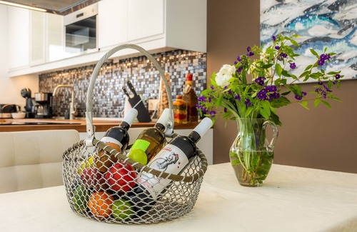The house has three attractively designed bedrooms for your restful sleep. From 2021 all bedrooms are air-conditioned. Two of the beautiful rooms are furnished with a double bed á 140 x 200cm, one of which has a private bathroom en suite with shower. Another room is furnished with a bed of size 180 x 200cm. The latter two share a chic bathroom with floor-to-ceiling shower, and there is also a guest toilet.