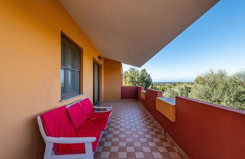 The holiday home “Villa Sunset” is situated in Quartu Sant’Elena, a municipality east of Cagliari, and is in walking distance to the beach. The 70 m² apartment consists of a living room, a well-equipped kitchen, 2 bedrooms (one with 2 single beds) as well as 2 bathrooms and can therefore accommodate 4 people. Additional amenities include Wi-Fi, a washing machine, air conditioning, cable television, a baby cot and a highchair (both on request). A balcony with nice views of the sea invites you to start the day with a cup of coffee. The outdoor area also comprises a private covered terrace area as well as a shared garden with seating furniture and a barbecue for you to relax or spend the evenings with a glass of wine and tasty dinners. A supermarket, a café and a restaurant can be reached on foot within 15 minutes (1.2 km), while a pharmacy is 3 km or a 4-minute drive away. After a 5-minute drive (1.7 km) to the nearest beach Spiaggia di Capitana (2 stops), you can bask in the sun and swim in the blue water of the little bay next to the marina. The region’s hilly landscape is also ideal for hiking or cycling activities, while the scenic Villasimius peninsula with several wonderful beaches and charming seaside towns can be reached after a 40-minute drive (32 km). The bustling city of Cagliari lies a 30-minute drive (22 km) west of Quartu Sant’Elena, and the international airport is a 35-minute drive 27 km from the holiday home.