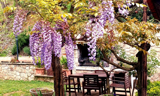 VILLINO SAN SILVESTRO is nestled among olive groves and vineyards and here you can enjoy a peaceful vacation relaxing in the garden or in the lawns above, sipping a glass of your favorite wine perhaps produced by one of the 20+ producers in the area. The private garden is very well maintained while in front of the house a pergola shelters you from the summer heat while you enjoy a delicious meal.