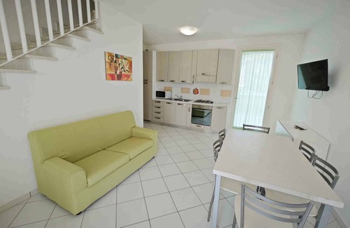 The holiday home built in 2012 and is a terraced house and furnished in a modern style. The property is located in a residential area, on the outskirts. Also due to the view over a panorama from the property and its quiet and sunny location the domicile is popular. Available for your exclusive use: garden furniture. Barbecue (private outdoor fireplace). Insect nets.LocationRosolina Mare. The holiday home is located on a enclosed garden plot with meadow, flowers and trees, bordered by a fence. The landlord does not live in the house or on the property. Access is via a side road (asphalted). Specialair conditioning.Facilities: internet access (WLAN) and washing machine.For your safety, the accommodation is equipped with CO2 detector and fire extinguisher. Dogsnot allowed. DistancesShopping 50 m, restaurant 150 m, town center 200 m. In summer: Adriatic Sea 250 m in Rosolina Mare (private beach 250 m in Rosolina Mare featuring sand). DivisionHoliday home, 2 floors, 3 rooms (including 2 bedrooms), 70 sqm, in total 5 beds. RoomThe entrance to your holiday home is located on the ground floor and is at ground level.Ground floor: Living room with 1 single bed, TV and dining area (5 seats). Kitchenette in the living room with TV, dining area (4 seats), gas stove (4 flames), oven, extractor hood and fridge. Bathroom (not heatable) with 1 washbasin and WC. 1st floor: 2 bedrooms each with 1 double bed. Bathroom (not heatable) with shower, 1 washbasin, WC, bidet and window. Terms of lease and pricesIncluded in the priceinternet access, electricity, gas, water. Side costs-Costs on the spot:/Obligatory:final cleaning 70 € per object per stay (02.05.26-12.09.26), bed linen to bring along. hand towels to bring along. local tax by local tariff (if charged).On request:air conditioning 40 € per object per week (02.05.26-12.09.26), Wireless Internet access 3 € all inclusive per day. Late arrival after 21 pm 50 € per object per stay (02.05.26-12.09.26).Deposit:EUR 100,-/object
