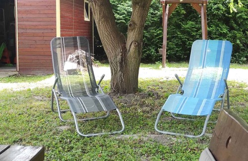The holiday home built in 1975, was renovated in 2016 and is a semi-detached house and furnished in a modern style. Also due to its quiet and sunny location the domicile is popular. Available for your exclusive use: sunbathing lawn, parasol, sun lounger, children's playground, swing, sandpit, barbecue facilities, pavilion, garden furniture, Hollywood swing and campfire site.LocationBalatonkeresztúr. The holiday home is located on a 200 sqm enclosed garden plot with meadow, flowers, shrubs and trees, bordered by a fence. The landlord does not live in the house or on the property. Egy kis kutya max. 5 kg amountedett. When handing over the property, the landlord may need personal data Access is via a side road (asphalted). Parking (for 2 cars) is available on the property. Specialair conditioning. There is no heating.Facilities: baby cot, internet access (WLAN), iron and washing machine. TV reception takes place via antenna. TV channels only in local language. Leisuretable tennis. Dogsallowed, EUR 15.00/pet per day. DistancesShopping 300 m, restaurant 300 m. In summer: Balaton 500 m in Balatonmáriafürdő (beach 500 m in Balatonmáriafürdő featuring meadow). Free beach and paid beach also about 500 m. DivisionHoliday home, 1 floor, 2 rooms (including 2 bedrooms), 40 sqm, in total 5 beds (including 1 cot). RoomThe entrance to your holiday home is located on the ground floor and leads over 3 steps directly into the kitchen. Bedroom with 2 single beds, TV, radio and DVD player. Bedroom with 1 double bed, 1 additional bed on bed (smaller 2.00 x 0.90 m) (only suitable for children under the year of 11) and TV. Kitchen with dining area (3 seats), gas stove (3 flames), oven, fridge (120 l, icebox), microwave, coffee machine and toaster. Hallway. Bathroom with washing machine, shower, 1 washbasin and hairdryer. Separate toilet with WC and window. Terms of lease and pricesIncluded in the priceinternet access, air conditioning, parking place, electricity, water, final cleaning, bed linen, sunloungers, Wireless Internet access. Side costs-Costs on the spot:/Obligatory:local tax by local tariff.On request: For a fee: baby cot – please order at booking.Deposit:EUR 100,-/object
