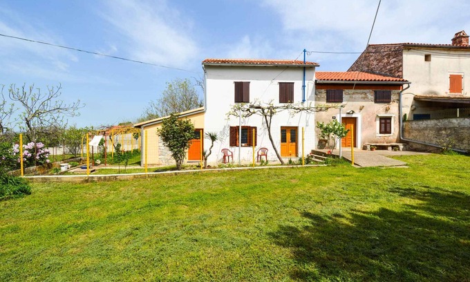 The standig individually holiday home. The property is located in a residential area. The domicile is also popular because of the quiet location. For exclusive use are available: grill possibility, terrace and garden furniture.LocationJadreški. The holiday home is located on a closed plot with meadow. The landlord does not live in the house or on the property. The access goes via a side road. Parking lot (for 2 cars) on the property. Specialair conditioner. TV channels only in local language. Dogsallowed, EUR 5.00/pet per day. DistancesShopping opportunity 150 m, restaurant 4 km, town center 8 km. Pula: airport 7 km and discotheque, cinema, bank each 8 km.In summer: Adria 8 km in Sisan (beach 8 km in Sisan with gravel and rocks). DivisionHoliday home, 2 floors, 4 rooms (including 2 bed rooms), 74 sqm, in total 6 beds (including 2 additional beds). RoomGround floor: Dining room with sitting area and dining area. Living/bedroom with 1 additional bed on couch/sofa and TV. Kitchen in the dining room with gas stove (4 flames), oven, dishwasher, fridge (icebox) and microwave. Bathroom with shower and WC. 1st floor: Separate toilet with WC and bidet. Bedroom with 2 single beds. Bedroom with 1 double bed. Terms of lease and pricesIncluded in the priceparking place, electricity, gas, water, final cleaning, bed linen, hand towels. Side costs-Additionally(Payable when booking)/registration fee obligatory 3,80 € per person per stay. local tax.Costs on the spot:/On request:air conditioning 5 € per object per day.Deposit:EUR 150,-/object