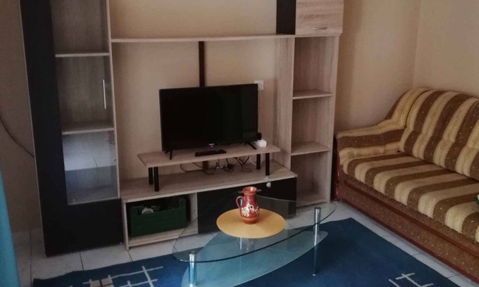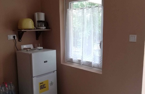 The holiday home was renovated in 2021 and is a semi-detached house and furnished in a typical country style. The property is located in a residential area, on the outskirts. Also due to its quiet and sunny location the domicile is popular. Available for your exclusive use: sunbathing lawn, parasol, children's playground, sandpit, garden shower, barbecue facilities, terrace, garden furniture, Hollywood swing and campfire site. baby bath. 2 bikes for adults and 2 bikes for children.LocationBalatonkeresztúr. The holiday home is located on a 320 sqm enclosed garden plot with meadow, flowers and shrubs, bordered by a fence. The landlord does not live in the house or on the property. Located 29 km from Thermal Lake Hévíz, 25 km from Festetics Castle and 36 km from St Michael Hill and St Michael Chapel, the property offers a garden and free private parking. Access is via a side road (rubble or gravel). Parking (for 3 cars) is available on the property. SpecialThere is no heating.Facilities: children's toys, baby cot and high chair. TV reception takes place via satellite. Leisure4 bicycles. Dogsnot allowed. DistancesShopping 300 m, restaurant 50 m, town center 800 m. railway station in Balatonmáriafürdőalsó 500 m. In summer: Balaton 500 m in Balatonmáriafürdő (beach 500 m in Balatonmáriafürdő featuring meadow). fishing in Balatonmariafürdö 500 m. Free beach DivisionHoliday home, 2 floors, 4 rooms (including 3 bedrooms), 80 sqm, in total 5 beds (including 2 additional beds), on request additionally 1 child up to 2 years in a baby cot. RoomThe entrance to your holiday home is at ground level and leads over the 12 sqm terrace.Ground floor: Living room with sitting area, TV and access to the terrace (15 sqm). Kitchen with dining area (4 seats), gas stove, oven, fridge (icebox), microwave, coffee machine and toaster. Bathroom with shower, 1 washbasin and WC. Upper floor: Bedroom with 2 additional beds on couch/sofa, 1 baby cot and access to the balcony. Bedroom with 1 double bed and access to the balcony (5 sqm). Bedroom with 1 single bed. Separate toilet with WC. Terms of lease and pricesIncluded in the pricebabycot, bicycle, parking place, electricity, gas, water, final cleaning, bed linen, baby cot – please order at booking. Side costs-Additionally(Payable when booking)/local tax.Deposit:EUR 150,-/object