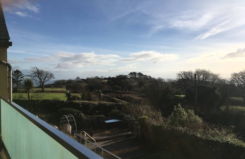 Upstairs there are four bedrooms inc two double bedrooms, one king and one super king.There are three bathrooms which have all been renovated autumn 2021 both en-suites have showers. A family bathroom/ shower room serves the other two bed rooms. All bedrooms have own tv and you can see the sea from all across the countryside. Two of the bedroomshave access to the balcony.justice! Parking for three cars only and maximum occupancy 8 people. Two night stays accepted low season. School summer holidays week bookings only -Thursday to Thursday