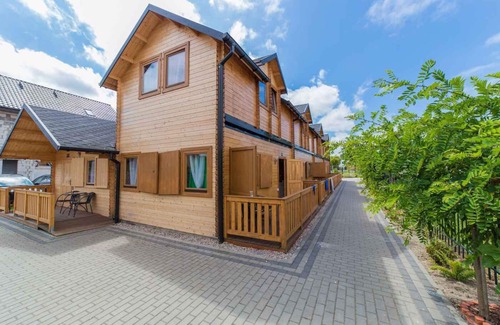 The holiday home built in 2015 and is a terraced house and furnished in a modern style. The property is located in a busy environment, on the outskirts. Also due to the view over a panorama from the property and its sunny location the domicile is popular. Available for shared use: children's playground, swing, sandpit, climbing frame, barbecue facilities, terrace, pavilion and garden furniture.LocationMielno. The holiday home is located on a 855 sqm enclosed garden plot, bordered by a fence. The landlord does not live in the house or on the property. Access is directly from the main road. Parking is available on the property and on the street in front of the house. SpecialThere is no heating.Facilities: internet access (WLAN) and dryer. TV reception takes place via antenna, satellite. Leisure4 bicycles. Dogsallowed, EUR 6.00/pet per day. DistancesShopping 300 m (300 m in winter), restaurant 100 m, town center 1000 m. discotheque in Mielno 1000 m. Railway line 400 m. In summer: Baltic Sea 1000 m in Baltic Sea (beach 1000 m in Baltic Sea featuring sand). DivisionHoliday home, 2 floors, 3 rooms (including 2 bedrooms), 50 sqm, in total 6 beds (including 2 additional beds). RoomThe entrance to your holiday home is located on the ground floor, is at ground level and wheelchair accessible and leads over the terrace directly into the living room.Ground floor: Living room (20 sqm, walk-through room) with 2 additional beds on double sofa bed, sitting area, TV, dining area (4 seats) and access to the terrace (9 sqm, garden furniture, 1 table, 4 chairs). Cooking nook in the living room (3 sqm, walk-through room) with TV, dining area (4 seats), electric stove (ceramic hob, 2 plates), fridge (icebox), dryer and access to the terrace. Bathroom (3 sqm, not heatable) with with shower facility, 1 washbasin and WC. 1st floor: Bedroom (6 sqm) with 1 double bed. Bedroom (10 sqm) with 2 single beds. Terms of lease and pricesIncluded in the priceinternet access, parking place, water, bed linen (first usage), Wireless Internet access. Side costs-Costs on the spot:/Obligatory:electricity 1,50 zł per kilowatt hour based on usage. final cleaning 50 € per object per stay. local tax by local tariff.Deposit:EUR 50,-/object.