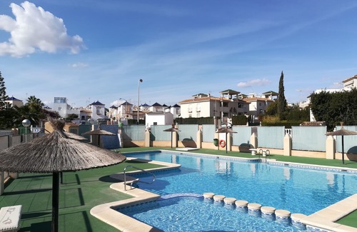 Holiday home with very large communal swimming pool for rent in the urbanization los altos in torrevieja near Punta prima.
