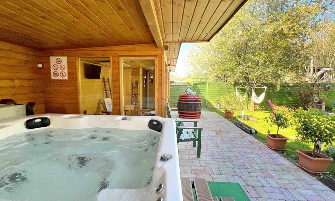 Holiday home with lovely furnishings, whirlpool and sauna is located in Koroshegy. Holiday home with lovely furnishings, whirlpool and sauna provides accommodation, featuring Hot Tub, Kitchen, Parking, among other amenities. This House features Hot Tub, Kitchen, Parking, to make your stay a comfortable one.