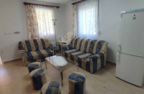 The detached holiday home is furnished in a modern style. Also due to its quiet and sunny location the domicile is popular. Available for use: parasol, sun lounger, barbecue facilities, terrace, garden furniture, Hollywood swing and courtyard. Rowboat 10 EUR / DayLocationBalatonmáriafürdő. The holiday home is located on a 200 sqm enclosed garden plot with meadow and flowers, bordered by a fence. The landlord lives in a separate building on the property. Access is via a side road (asphalted). Parking (for 4 cars) is available on the property. Specialair conditioning, central heating.Facilities: internet access (WLAN). TV reception takes place via satellite.For your safety, the accommodation is equipped with smoke detector. PoolAll pools are available for exclusive use. Outdoor pool (usable from early June to early September, diameter 5 m, depth 0,90 m). Dogsallowed, EUR 8.00/pet per day. DistancesShopping 150 m, restaurant 200 m, town center 700 m. In summer: Balaton 250 m in Balatonmáriafürdő (beach 800 m in Balatonmáriafürdő featuring meadow). Free beach. DivisionHoliday home, 2 floors, 6 rooms (including 5 bedrooms), 130 sqm, in total 11 beds. RoomGround floor: Bedroom with 2 single beds. Eat-in kitchen with sitting area, TV, dining area (8 seats) and access to the terrace. American kitchen with gas stove (4 flames), oven, fridge (icebox), microwave and coffee machine. Bathroom with shower, 1 washbasin and window. Separate toilet with WC. Upper floor: 2 bedrooms each with 1 double bed. Bedroom with 1 single bed and 1 bunk bed. Bedroom with 2 single beds. Bathroom with shower, 1 washbasin, WC and window. Terms of lease and pricesIncluded in the priceOutdoor pool, internet access, children bed, air conditioning, parking place, electricity, gas, water, heating, final cleaning, bed linen, pool, sunloungers, Wireless Internet access. Side costs-Costs on the spot:/Obligatory:local tax by local tariff.Deposit:EUR 200,-/object.