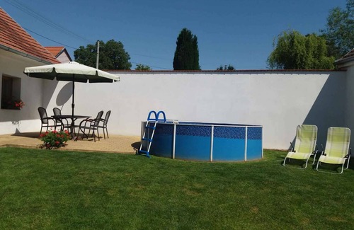 The detached holiday home was renovated in 2001 and is furnished in a typical country style. Also due to its quiet and sunny hillside location at the edge of the forest the domicile is popular. Available for your exclusive use: parasol, barbecue facilities, pavilion and garden furniture. Cot - free on request.LocationHurka/Cesky Budejovice. The holiday home is located on a 2000 sqm enclosed garden plot with meadow. The landlord does not live in the house or on the property. Access is via a side road (asphalted). Parking (for 5 cars) is available in a garage and on the property. Specialcentral heating (gas).Facilities: baby cot, internet access (WLAN) and iron. TV reception takes place via antenna, satellite. PoolAll pools are available for exclusive use. Outdoor pool (usable from early June to end of August, diameter 3.6 m, depth 1 m). Leisuretable tennis. Dogsallowed, EUR 5.00/pet per day. DistancesShopping 1000 m, restaurant 1000 m, town center 1000 m. railway station in 1000 m. thermal bath in 25 km. indoor swimming pool, sauna, discotheque each 9 km. Railway line 1000 m. In summer: Bathing possibility (beach 40 km in Suchdol). tennis in 9 km. golf, horse riding each 15 km in Hluboka nad Vltavou. diving, boat rental, boat launch each 60 km in Lipno nad Vltavou. fishing in Vidov 6 km. In winter: Ski area 60 km in Lipno nad Vltavou (Kramolin). ice skating in 9 km. DivisionHoliday home, 1 floor, 3 rooms (including 2 bedrooms), 95 sqm, in total 6 beds (including 2 additional beds), on request additionally 1 child up to 2 years in a baby cot. RoomThe entrance to your holiday home is at ground level and leads directly into the hallway with wardrobe. Bedroom with 1 double bed. Bedroom with 2 single beds. Living/bedroom with 2 additional beds on couch/sofa, sitting area, TV, fireplace, radio and access to the terrace (12 sqm). Cooking nook in the living & bedroom with dining area (6 seats), electric stove, oven, fridge, microwave, coffee machine and electric kettle. Bathroom with bathtub, washing machine, shower and 1 washbasin. Separate toilet with WC. Terms of lease and pricesIncluded in the priceOutdoor pool, internet access, parking place, water, pool, bed linen (first usage), Wireless Internet access. Side costs-Additionally(Payable when booking)/baby cot – please order at booking on request per bed per week.Costs on the spot:/Obligatory:electricity 0,50 € per kilowatt hour based on usage. gas 5,40 € per cubic meter based on usage. chimney wood 2 € based on usage. final cleaning (if not performed by the tenant) 30 € per object per stay. hand towels to bring along. local tax by local tariff.Deposit:EUR 150,-/object