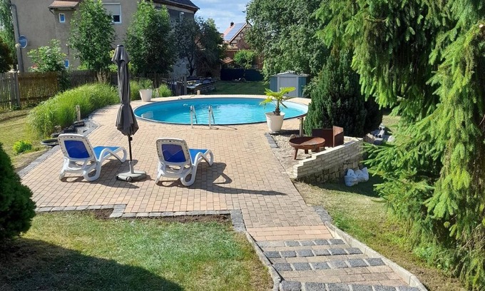 Holiday home with private pool in a quiet location is located in Hainichen. Holiday home with private pool in a quiet location provides accommodation, featuring Pool, Private Pool, Balcony/Terrace, among other amenities. This House features Pool, Private Pool, Balcony/Terrace, to make your stay a comfortable one.