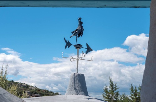 Just outside the picturesque harbour of Porto Rotondo lies the Casa Penthouse holiday home, which is part of a complex of 6 independent villas. The Sardinian style holiday home is located on the 1st floor and has beautiful furnishings in turquoise and blue as well as cosy wooden elements. The studio apartment consists of a well-equipped outdoor kitchen as well as 2 electric hotplates in the living space which is equipped with a sleeping area (with a double bed) as well as a bathroom. It can therefore accommodate 2 people. The child-friendly holiday home also has air conditioning, a TV, a cot and a highchair (the latter 2 on request). The highlight of the accommodation is the large outdoor area of the complex. Here you will find a beautiful garden with Mediterranean plants, peacocks and turtles. Spend great hours here and let yourself be consumed by the relaxed atmosphere. There is also a large shared pool that guests have access to for an additional fee (open from April 5th to September 30th), which glows in 7 different colours, and a private terrace where you can enjoy delicious meals and end the evening with a glass of wine. Due to the ideal location outside the hustle and bustle of Porto Rotondo, absolute privacy is guaranteed and you can reach the centre within a few minutes by car. Here you will find shops, restaurants, bars and cafés. The sandy beach Spiaggia di Marinella is 3 km away.