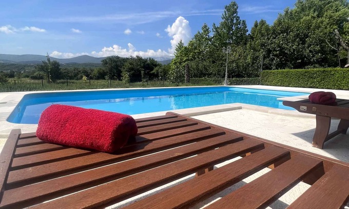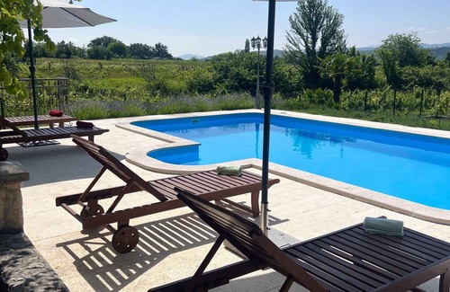 Holiday home with swimming pool and air conditioning is located in Donji Prolozac. Holiday home with swimming pool and air conditioning provides accommodation, featuring View, Security/Safety, Sports/Activities, among other amenities. This House features View, Security/Safety, Sports/Activities, to make your stay a comfortable one.