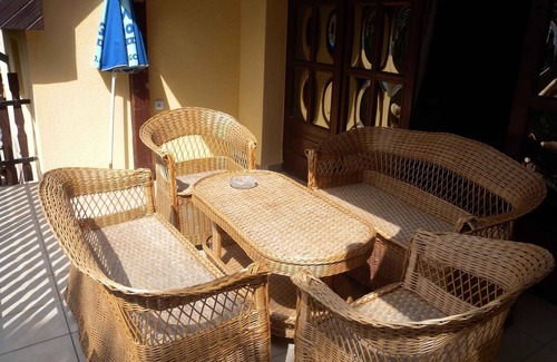 The holiday home built in 1990 and is a semi-detached house and furnished in a functional style. The property is located in a residential area, in the town centre. Also due to its quiet and sunny location the domicile is popular. Available for shared use: sunbathing lawn, barbecue facilities, terrace, garden furniture, campfire site and courtyard.LocationSiofok. The holiday home is located on a 600 sqm enclosed garden plot with meadow, flowers, shrubs and trees, bordered by a fence. The landlord lives permanently in the house, but uses a seperate entrance. The holiday home is located right in the heart of Somogyfok, just 2 km from Ujhelyi Beach and 9.2 km from Bella Stables and Animal Park. This property offers access to a balcony and free private parking.