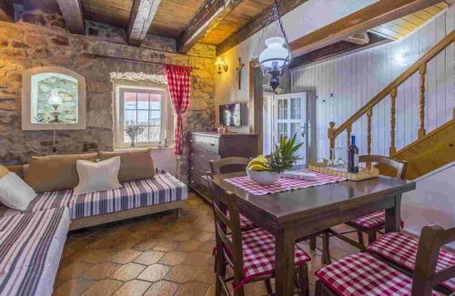 The holiday home built in 1900, was renovated in 2011 and is furnished in a modern and rustic style. Also due to the view over the sea from the property the domicile is popular. Available for use: sun lounger, barbecue facilities, terrace and garden furniture.LocationDramalj. The holiday home is located on a enclosed garden plot. Parking (for 1 car) is available on the property. Specialair conditioning.Facilities: internet access (WLAN) and washing machine. TV reception takes place via satellite. Wellnesswhirlpool. Dogsallowed. Free of charge. DistancesShopping 1,8 km, restaurant 800 m, town center 3,5 km. In summer: Adriaitic sea 500 m in Dramalj (beach 500 m in Dramalj featuring gravel). DivisionHoliday home, 2 floors, 4 rooms (including 3 bedrooms), 71 sqm, in total 5 beds. RoomThe entrance to your holiday home is located on the ground floor and is at ground level. Living room with sitting area, TV, dining area and access to the terrace (25 sqm, covered, garden furniture). Bedroom with 1 single bed. Bedroom with 2 single beds. Bedroom with 1 double bed. Cooking nook in the living room with gas stove, electric stove, oven, dishwasher, fridge (icebox), microwave, coffee machine and electric kettle. Bathroom with washing machine, shower, 1 washbasin, WC and hairdryer. Terms of lease and pricesIncluded in the priceinternet access, air conditioning, parking place, electricity, gas, water, final cleaning, bed linen, hand towels. Side costs-Additionally(Payable when booking)/registration fee obligatory 5 € per person per stay. additonal fee for short-term stays (less than 3 nights) obligatory 30% per booking per stay.Costs on the spot:/Obligatory:local tax by local tariff.Deposit:EUR 200,-/object.