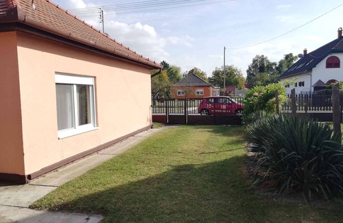 The detached holiday home was renovated in 2009 and is furnished in a modern style. The property is located in a busy environment, in a holiday home settlement. Also due to its sunny location the domicile is popular. Available for your exclusive use: sunbathing lawn, sun lounger, children's playground, swing, barbecue facilities, pavilion, garden furniture, Hollywood swing and courtyard.LocationBalatonfenyves. The holiday home is located on a 300 sqm enclosed garden plot with meadow and trees, bordered by a fence. The landlord does not live in the house or on the property. Access is via a side road (asphalted). Parking (for 2 cars) is available on the property. SpecialThere is no heating.Facilities: internet access (WLAN). TV reception takes place via satellite.For your safety, the accommodation is equipped with smoke detector. Dogsnot allowed. DistancesShopping 150 m, restaurant 150 m, town center 1500 m. railway station in Balatonfenyves 200 m. thermal bath in Csisztapuszta 10 km. In summer: Balaton 400 m in Balatonfenyves (beach 400 m in Balatonfenyves featuring meadow). DivisionHoliday home, 1 floor, 3 rooms (including 2 bedrooms), 55 sqm, in total 4 beds. RoomThe entrance to your holiday home is located on the ground floor, is at ground level and leads directly into the hallway. Living room with sitting area, TV and dining area (4 seats). Bedroom with 1 double bed. Bedroom with 2 single beds. Kitchenette with gas stove (4 flames), oven, extractor hood, fridge (icebox), microwave, coffee machine and electric kettle. Bathroom with bathtub with shower facility, 1 washbasin, WC and window. Terms of lease and pricesIncluded in the priceinternet access, parking place, electricity, water, final cleaning, bed linen, sunloungers, Wireless Internet access. Side costs-Costs on the spot:/Obligatory:local tax by local tariff.Deposit:EUR 150,-/object