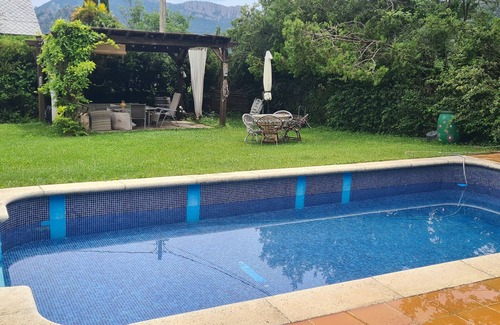 The accommodation stands out for its private outdoor area, which features a pool (open from June 24 to September 15), garden, open terrace, covered terrace, 2 balconies, barbecue and outdoor shower. Nearby, you can visit the cloister or the church at the Llosa del Cavall reservoir, and the Port del Comte ski resort is a short drive away.