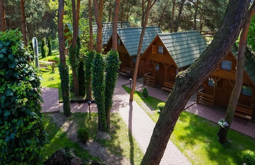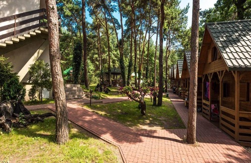 Professional and attractively equipped holiday resort 90 m from the beach, in the vicinity of a pine forest. The centre of a quiet seaside settlement (Łazy), in the immediate vicinity of Lake Jamno. A cosy holiday cottage with a covered terrace and a mezzanine. A complete set of garden furniture on the terrace. On the ground floor there is a living room with TV and a 2-person sofa bed. The living room is connected to a small kitchenette. On the ground floor there is also a bathroom with a shower. On the mezzanine there is a 2-person bedroom. Possibility of electric heating (heater additionally payable). Wireless internet is available. On the fenced area of the resort there is an attractive playground for children and a playroom. There is a car park (additionally payable between 09.07 and 15.08), a barbecue gazebo, a public washing machine (for an additional fee). There is also a catering complex on site (bar, café, ice cream parlour, fry-up). You can order breakfasts and dinners here. You can come to the resort (for a fee) with a dog, but only so-called gentle breeds are allowed. The price of your stay includes: bed linen, internet, final cleaning, high chair (on request). Attractions in the area: In the immediate vicinity you can find many recreational facilities, restaurants and cafes. The international R-10 cycling trail runs next to the resort, which is an easy and convenient way to get to the neighboring seaside towns by bike. The resort is located near Lake Jamno (convenient access to the water is approx. 600 m away). In the neighboring Mielno you can rent water equipment (pedal boats, kayaks, rowing and sailing boats) allowing you to explore this body of water. There are also fishing spots here.