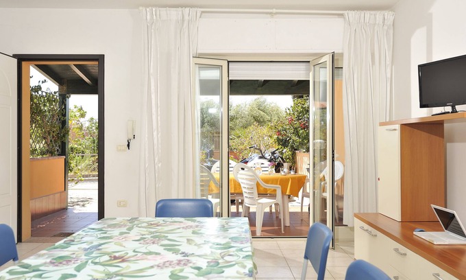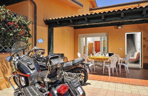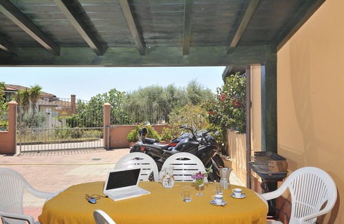 This house is located in a private and quiet area and is part of a small village of detached houses. The houses are surrounded by private garden where you can park your car and is suitable for families or groups of friends. Is on two levels has a double bedroom with terrace overlooking the bay, two bathrooms, two bedrooms with two beds with a window overlooking the garden and the other with high window, a comfortable living room with sofa bed and equipped and functional kitchen. outdoor area reserved and furnished with table and chairs. The house is equipped with bedding, air-conditioned and tastefully furnished and can accommodate small pets. From the chalet can be reached on foot in 5 minutes to the beach, restaurants, pizzerias and pubs.