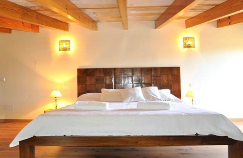 The main house measures 240 m². On the ground floor you will find the living room with a fireplace, a flat screen television and a dining area. Adjacent to the living room is the bedroom furnished with two single beds (90 cm each). The kitchen is fully furnished with cooking plates, an oven, a a microwave, coffee maker, etc. The adjacent bathroom boasts a shower. Due to its high ceilings, a second storey with three bedrooms, two bathrooms and a patio were added, from where you can enjoy beautiful views. All bedrooms are furnished with fans. In front of the main house is the guest house, which accommodates two people. It boasts a bedrooms, a living room, a bathroom and a kitchen. The bedroom is air conditioned.