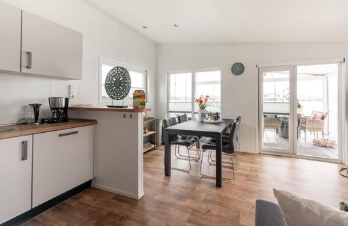 Inside, the accommodation provides modern conveniences with central heating, WiFi, and a well-equipped American-style kitchen. The kitchen comes fully stocked with essentials like a fridge, freezer, oven, microwave, coffee machine, and kitchenware. A TV with German and Dutch channels offers entertainment during downtime.