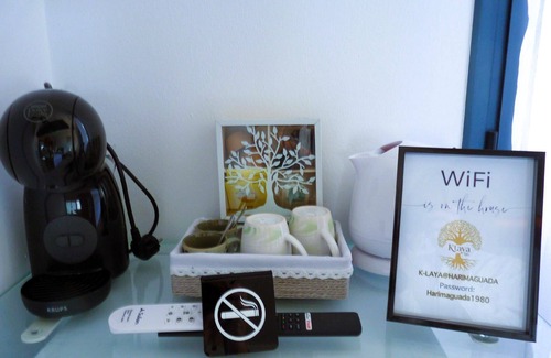 The property is distributed over two floors that guarantee comfort and privacy. The first floor features a spacious living room with stunning sea views, comfortable sofa, smart TV and dining area; a double bedroom with TV; a full bathroom with shower and a fully equipped kitchen with access to an interior patio with dining table, ideal for al fresco dining. The first floor houses two double bedrooms with TV, coffee machine and sea views; a full bathroom with shower and bidet; plus a bedroom suite with two single beds, TV, and private bathroom with shower and bathtub, offering spacious and comfortable spaces for all guests to relax. 3 bedrooms have mini fridge, coffee maker, kettle and own wifi (in addition to the main wifi for the whole house) and each bedroom has a ceiling fan.