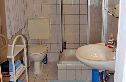The modernized in 2016 cottage is equipped with a living room (upholstered furniture, flat screen TV, dining table), an open kitchen (electric stove with oven, refrigerator with freezer, dishwasher, microwave, div. Kitchen appliances), 2 bedrooms upstairs (1 x double bed, 1 x 2 Upholstered), bathroom with shower / WC on the ground floor, guest toilet on the first floor and central heating. At your disposal are W-LAN, a furnished terrace, barbecue, sunbeds, carport and bicycle storage. For infants, a cot and high chair can be provided. The total price includes bed linen, towels, water and energy consumption and final cleaning. To be paid on site: Pet (if applicable) 3 EUR / day. In this object the journey of a medium sized dog is allowed. Several dogs or other pets require prior approval from the owner. The pet must be registered with the booking. If an entry note is not possible, a late registration must be made.