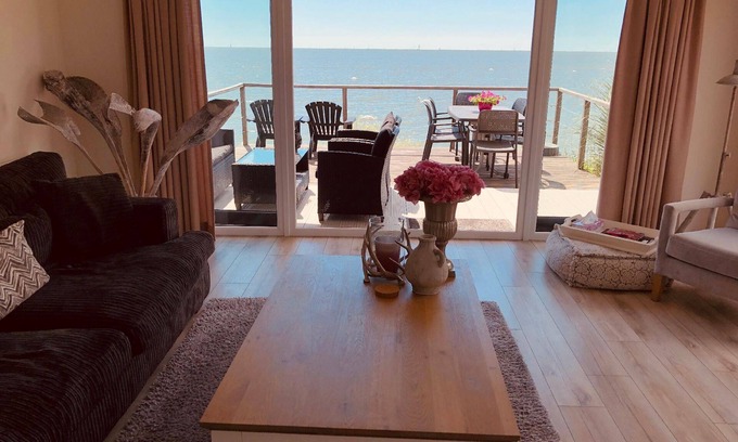 You have your own terrace with patio furniture, from which you have a fantastic view over the Markermeer. You have your own terrace with terrace furniture, from which you have a fantastic view of the Markermeer. You also have a private parking space for 2 cars.