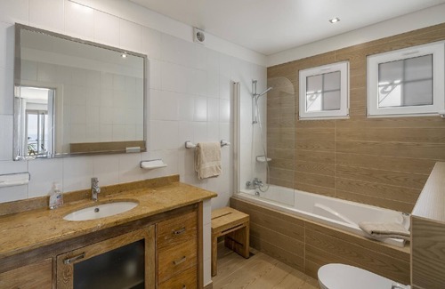 The games room is accessible via an outside staircase, with sitting area (with a 1,40m wide sofa-bed for the 7th and 8th persons), flat screen TV and PlayStation, bar, and pool table and bathroom.