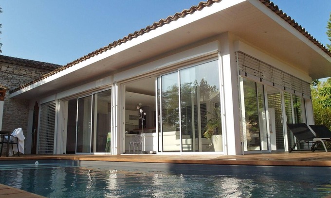 In the heavenly setting of Domaine de Monteils, a former priory that has been completely renovated, this luxury villa with its avant-garde design enjoys a landscaped garden of 1,800 m2 that is not overlooked.