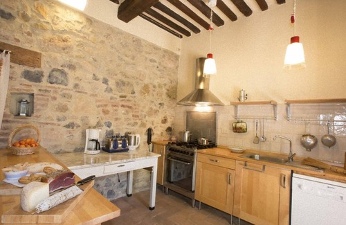 The house is complete with accessories and kitchen equipment. The large living room with kitchenette is located on the first floor and can be used for al fresco dinners and breakfasts in the shade of the pergola in summer. The kitchen is fully equipped, from the microwave to the dishwasher. The old stone walls guarantee a pleasant temperature even on hot days.