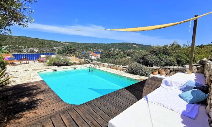 Villa Luna is small villa located on a hilly terrain some 90 m away from the sea. The house has three bedrooms with a double beds and fold out sofa bed in the living has two bathrooms with walk in shower , large terrace with a BBQ and beautiful view on the bay, which becomes even more beautiful at sunsets. There is also a swimming pool(22m2) at your disposal. The house is furnished in a modern-rustical style and is equipped with all necessary appliances that you might need during your of nature and active vacations will be inspired by this beautiful island with lush Mediterranean vegetation, long walks through nature and crystal clear you want a true escape from the stress, traffic jams and problems of everyday life, then this peaceful island oasis and Villa Luna is just for you!
