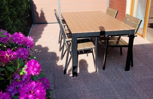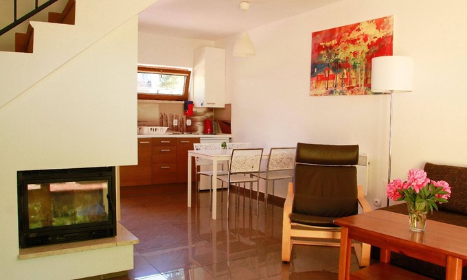 The Sea View cottage with an area of 65m2 is located on the premises of the Pelikan Resort Dźwirzyno and is divided into two zones - a leisure zone and a private zone.The cottage is designed for four guests (two double bedrooms). However, it is possible to accommodate two persons - in such a case, we change the living room into a sleeping area (please discuss the number of persons with the resort staff in advance).The ground floor consists of a kitchenette, a living room with a fireplace, an exit to the terrace and a bathroom. On the first floor there are two double bedrooms and a spacious wardrobe.Heating in the winter months by means of a fireplace.LIVING ROOMThe comfortable living room of 26 m2 is equipped with a sofa set - a corner sofa with a sleeping function (for two people), a comfortable armchair and a coffee table. The lounge also has an entertainment corner - 32" TV and music equipment. The main attraction of the cottage is the corner fireplace, which provides a unique, cosy atmosphere especially during autumn and winter evenings. - KITCHEN WITH DINING ROOMThe kitchenette is connected to the living room by a dining space consisting of a table for four. The kitchen space consists of a well-equipped area for preparing meals (pots, pans, electric cooker). Each cottage has complete crockery for 6 persons, glassware (glasses) and a wine opener. - GARDENA huge panoramic window in the living room leads directly into the garden built into an elegant terrace.The outdoor space is equipped with a table and chairs and a place where you can organise a barbecue (to be rented from the accommodation staff). - BATHROOMThe last room on the ground floor is the 3 m2 bathroom. Each bathroom is equipped with a shower with a high shower tray (which makes bathing children even easier), a toilet, a large washbasin with a cabinet. The decor of the rooms is in natural, warm colours (browns and beiges), which is conducive to relaxation after a day full of excitement and adventure. Towels can be hired - please ask the resort staff for details. - BEDROOM 1The double bedroom is furnished with two single beds with bedside tables and lamps. In addition, the room has a spacious wardrobe and a spacious chest of drawers. The main attraction of the room is a huge, panoramic window with a partial view of the sea - BEDROOM 2The bedroom is equipped with a QUEEN SIZE double bed, bedside tables with lamps and a spacious wardrobe and chest of drawers. An additional feature is a dressing table with a chair. The room has an exit to a private terrace of 6m2, where lounge furniture is at guests' disposal.COMPLIANCE AND ADDITIONAL SERVICESETOSTER - it is possible to rent a toaster free of charge. Please report your request to the resort staff.PARAVANTS AND LEGGES - are available on request. Please contact the resort staff.BBQ - barbecue equipment is available. Please contact the staff. The resort does not provide coal.BRIQUETTE/CHIMBERWOOD - firewood can be purchased. Please contact the resort staff.WASHING machine - there is a washing machine on the resort premises which can be used by prior arrangement with the resort staff.
