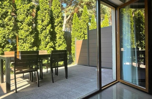 The cottage is located on the premises of Pelikan Resort Dźwirzyno, known for its comfortable year-round cottages with fireplaces and flats, located 30 metres from the beach exit. The resort is surrounded by trees and dunes, which are one of the most picturesque and naturally rich areas on the Baltic Sea.Thanks to such a neighbourhood, our guests can enjoy concerts of singing rare species of birds, relaxation with morning coffee and the sound of waves, and aromatherapy with air rich in iodine and valuable ingredients, saturated with the smell of the forest.The resort is located in the quiet, seaside town of Dźwirzyno in the West Pomeranian Voivodeship.Within a few steps from the resort there are the most important catering entertainment and service points (restaurants, stalls with seasonal dishes, shops, supermarket, vegetable and fruit stalls), clothes boutiques, souvenir stalls, post office, church and fishing port.The nearest city is KOŁOBRZEG (approx. 12km) - there you will find typical urban amenities.