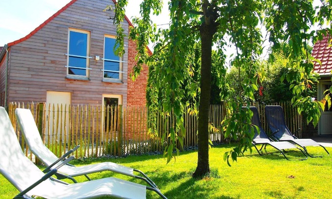 The three terraces are equipped with garden furniture, a parasol and two deckchairs. The plot is fenced and therefore perfect for children.