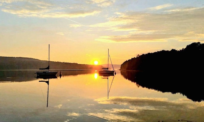 You live surrounded by a fascinating, almost unspoilt landscape on 93 m² of living space. The house is furnished in a timelessly modern, absolutely western style and radiates a very special feel-good character and a lot of warmth thanks to many lovingly placed accents. On the ground floor there is a large, bright room on the lake side with a very well-equipped kitchen in a nice design and the living room, which is furnished with a satellite TV and a new, comfortable and spacious seating set (also has a sleeping function & will then be equipped with a topper). The kitchen includes a ceramic hob (four plates), an oven, a dishwasher, a spacious fridge, a kettle, a mini oven, a filter coffee machine, a toaster and all crockery, pots and pans, etc... as well as many useful cooking utensils. In this room there is also an easy-to-use wood-burning stove (note: we will provide you with wood for the first day, if you need more, the tenant is responsible for purchasing it - this is the general custom in this region), which provides cosy warmth on cooler days. A cosy bathroom with a comfortable shower cubicle, a small sauna, a separate WC and a small anteroom complete the rooms on the ground floor. A lovingly designed staircase leads to the attic rooms on the upper floor, in which there are two separate bedrooms (2 single beds, which can also be used as a double bed if required, 1x futon bed), both rooms again with lake view, a further bathroom - with corner bath, a separate WC, and a small, cosy "bunk". The bunk can be used as a play corner or as an additional sleeping area for two smaller children or one adult (sofa bed can be pulled out).