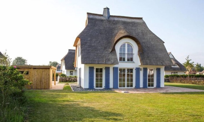 With a natural swimming area on the lagoon: Newly built luxury house with a thatched roof in a quiet, picturesque location. Sauna and fireplace for cozy hours, WiFi and satellite TV with Sky for variety - there's really nothing missing here. If you would like to swap the swimming area on the Bodden for the lively and colorful hustle and bustle of the Baltic Sea beach, simply drive by car to Zingst, which is only 17 kilometers away. You can also go on wonderful bike trips to discover the small idyllic villages and the beautiful landscapes around the lagoon. The communities of Fuhlendorf and Bodstedt are very idyllic on the southern Bodden coast. In the warmer seasons, passenger ships travel daily from Bodstedt to the Darß peninsula to Born and on through the Neuendorfer Bülten to Ahrenshoop-Althagen. Highlights included: All consumption-based energy costs, bed linen and towels sauna WIRELESS INTERNET ACCESS Firewood (initial supply) Activities nearby: The neighboring community of Bodstedt, with its traditional harbor, is known for Zeesen boats, which are based here. Some owners of Zeesen boats even offer rides and you shouldn't miss an opportunity like this! The big Bodstedt Zeesenboot regatta has started on the first weekend in September every year since 1965 - a popular subject, especially for amateur photographers.