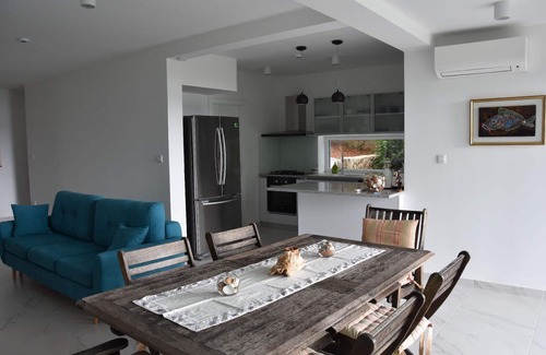 The beach is about 80 metres away. The beach is accessible via a private access door. The town centre with its restaurants and supermarkets is approximately 1500 metres away. There is a small restaurant on the beach 100 metres away.
