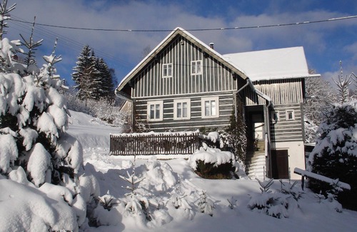 Charming, traditional wooden house with a rustic living atmosphere. The holiday home is located in the small mountain village of Křížlice in the picturesque Krkonoše Mountains, surrounded by mountainous countryside. Holidaymakers can set off on hikes directly from the front door and enjoy the peace and seclusion.