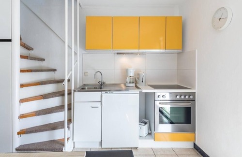 The flat has a separate kitchen. The following appliances are available: Cooker with oven, fridge with freezer compartment, kettle, coffee machine, crockery etc. The bedroom (for 4 people) can be reached via a narrow spiral staircase. It is possible to set up the existing travel cot in the bedroom (upper floor). The bathroom has a shower and WC. There is a television in the living room. Here also 2 persons can sleep on the sofa bed (1,60x2,00m). There is a private car park.