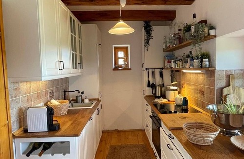 The former winegrower's house is located in the centre of a vineyard between vines and pastureland. The idyllic tranquillity is not disturbed by any neighbours or through traffic. The property is located between Szentbekkala and Köveskal in the beautiful Kali basin of the Balaton plateau. In both villages there are numerous good restaurants and wine taverns open all year round. Both villages can be reached on foot in about 10-20 minutes. Lake Balaton (BALATON) can be reached in approx. 12 minutes by car. Numerous water sports are available (sailing, SUP, wake-board, etc.) In the surrounding area there are numerous small former volcanoes, which offer an excellent opportunity for hiking and biking. The countless private wine taverns offer a culinary highlight. It is also possible to organise a private wine tasting on site.
