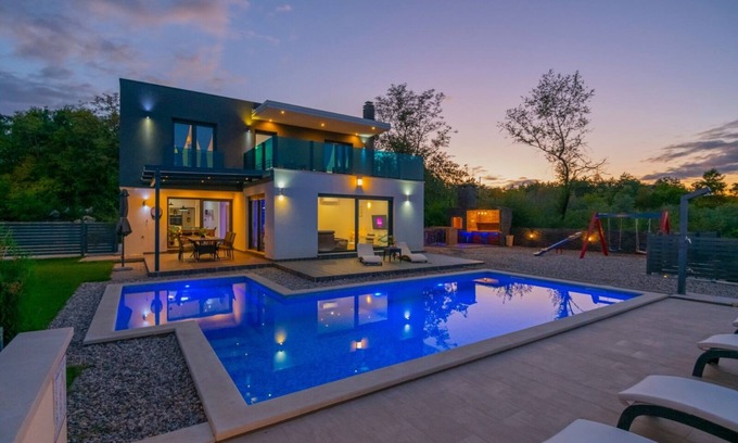The whole house looks beautiful and modern, furnished with top-quality and made of top materials. It's completely customized for renting and for guests. We have to watch out for every detail (from protection to simplicity of handling everything). The house is fenced all the way, especially around the pool and playground for football and volleyball. WiFi covers a complete house and garden.