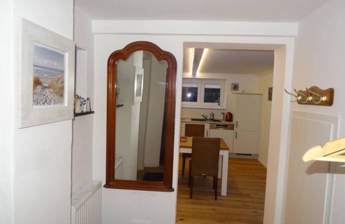 The house was renovated in 2017 and completely redesigned and refurbished. A special highlight is the secluded, covered and sheltered terrace, where you can enjoy a coffee, tea or a roll with freshly caught fish in any weather. The house (approx. 100 m²) offers you: on the ground floor: - a bright and friendly kitchen that leaves nothing to be desired. - a bright bathroom with underfloor heating and walk-in comfort shower. - a sauna - a utility room with washing machine and a hallway with cloakroom. on the 1st floor: - an extra WC - 1 bedroom with 1 bed - 1 bedroom with 2 beds and Smart TV (extra beds and cots are available on request) - 1 living room with cosy corner sofa, 2 armchairs, Smart TV (approx. 130 cm) and fireplace You can reach the attic via an open staircase from the living room: - a rustic sailor's bunk (no full standing height!) with 1 double bed. This sailor's bunk was built by a boat builder. - a spacious attic (storage space for suitcases, etc.)